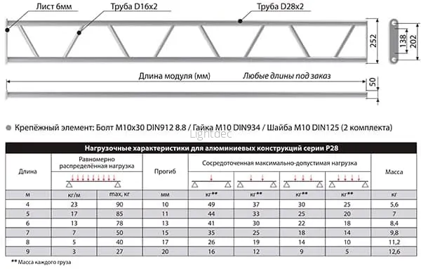 - Длина фермовой конструкции: 1000 мм.