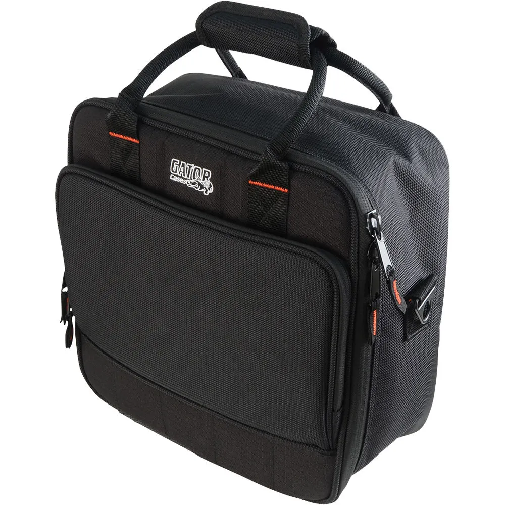 Описание кейса для микшераКейс GATOR G-MIXERBAG-1212 предназначен для транспортировки микшеров размером до 305x305x140 мм. Изготовлен из прочного нейлона, имеет 10-мм слой ударозащитного поролона и внутреннюю отделку из чёрной трикотажной ткани. Сумка оснащена двойными молниями, двумя ручками и съёмным ремнём с плечевой подкладкой. Также имеется вместительный карман для аксессуаров.