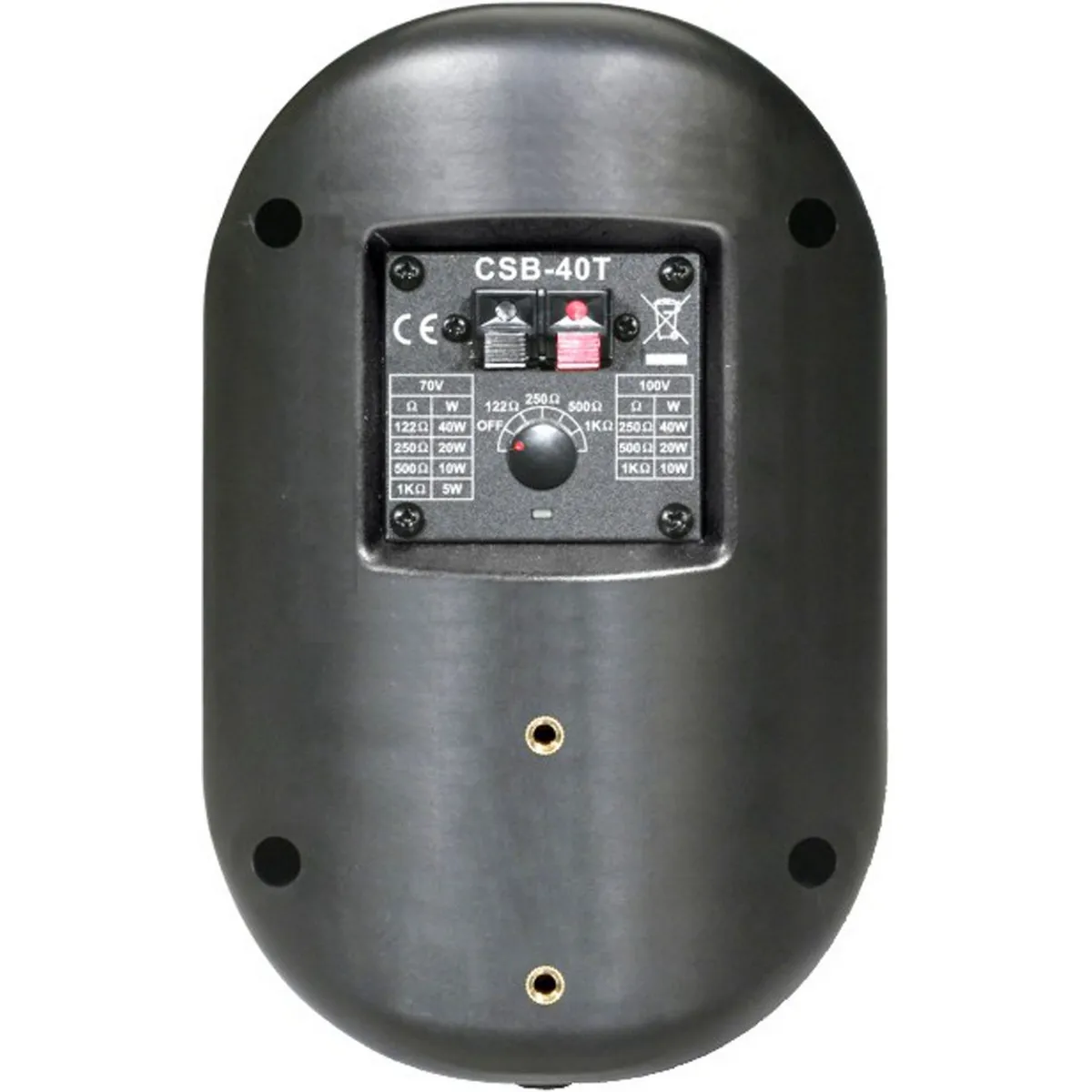 Настенный громкоговоритель SHOW CSB-40T/BK — это акустическая система с трансформатором 70/100В. Мощность — 40 Вт RMS, звуковое давление — 90 дБ. Частотный диапазон — от 78 Гц до 18 кГц. Диаметр динамика — 4 дюйма. Управление осуществляется с помощью переключателя мощности. Размеры: 136x140x206 мм, вес — 2,4 кг.