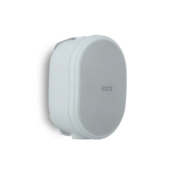 Настенный комплект Apart OVO5P включает в себя два небольших громкоговорителя с оригинальным овальным дизайном, который вполне соответствует названию серии (OVO от лат. ovum – “яйцо”). Один из этих компактных спикеров (активный, левый канал) имеет на борту стереоусилитель мощностью 2 x 20 Вт. К нему подключается пассивный спикер правого канала.Аккуратные литые фазоинверторные кабинеты громкоговорителей выполнены из прочного ABS-пластика и закрыты стальными сетчатыми грилями. Для настенного крепления они комплектуются металлическими U-образными кронштейнами, позволяющими устанавливать АС под разными углами и вращать их горизонтально или вертикально в зависимости от типа установки. Кронштейны способны обеспечить монтаж даже в углах помещения. Компактные акустические системы Apart OVO5P также допускают настольную установку.