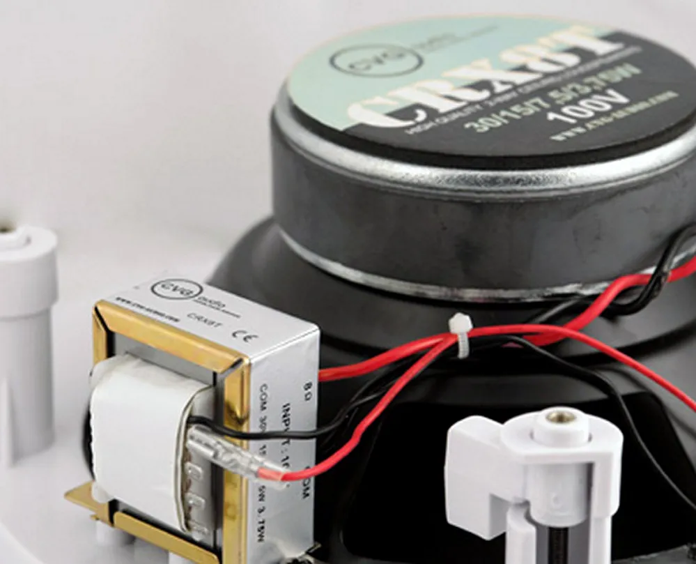 CRX8T работает с трансляционными линиями 100V и имеет встроенный трансформатор с четырьмя отводами мощности. Установка проста благодаря винтовому креплению и самозажимным клеммам.