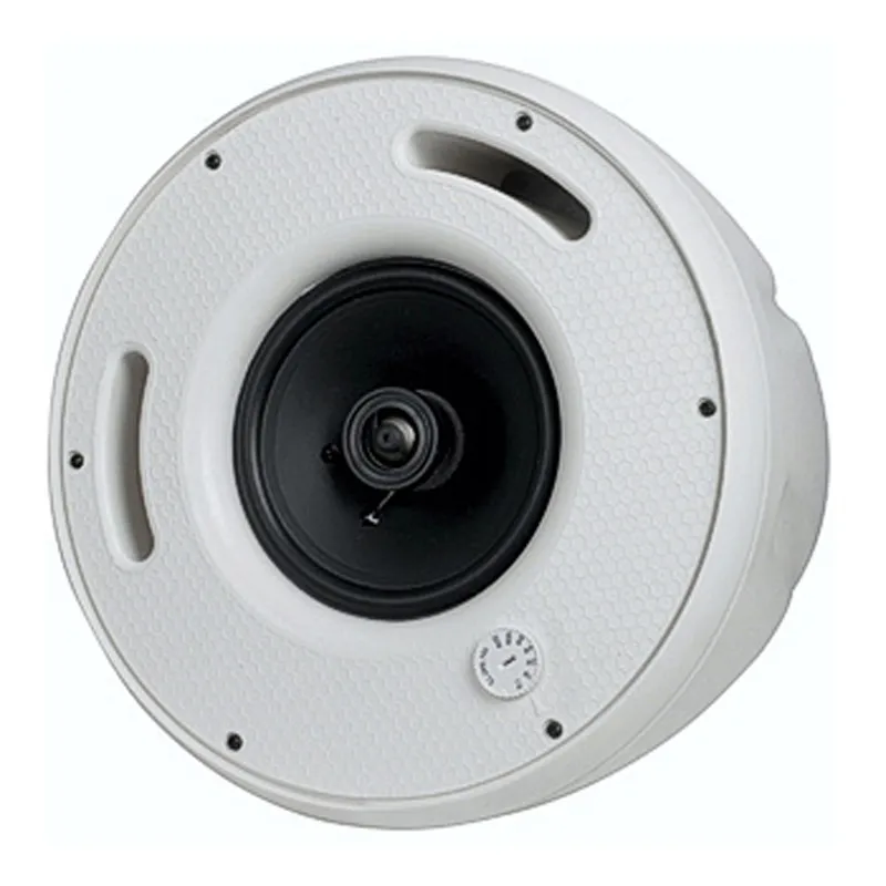 Система может работать в составе 100V трансляционных линий или с низкоомными усилителями. Есть круговой селектор для выбора одной из шести мощностей. Вуфер воспроизводит средние и низкие частоты, а купольный твитер — высокочастотные. Корпус изготовлен из белого ABS-пластика.