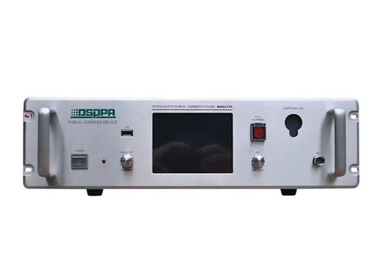 Блок управления DSPPA MAG-2120DSPPA MAG-2120 — это современное устройство для музыкально-речевой трансляции и аварийного оповещения. Оно оснащено цветным 6-дюймовым сенсорным экраном и удобным интерфейсом. Система поддерживает управление по протоколу Ethernet и имеет функции автоматического аварийного оповещения. MAG-2120 предлагает 8 входных каналов, 20 или 40 зон трансляции, встроенные источники аудиосигнала (AM/FM-тюнер, MP3-плеер) и жёсткий диск на 120 Гб. Устройство позволяет копировать MP3-файлы с USB-накопителя, имеет программируемый таймер и возможность мониторинга аудиоканалов.