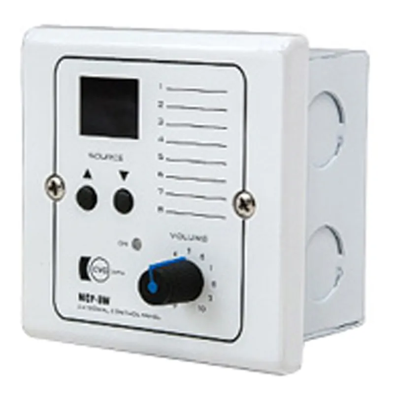 Описание панели управления CVGaudio WCP-BWНастенный зональный контроллер CVGaudio WCP-BW предназначен для управления каналом аудиоматрицы CVGaudio PMM-380. Позволяет управлять громкостью и выбором входа в зоне. Подключение до восьми контроллеров возможно для управления восемью зонами. Контроллер встраивается в стену или мебель, имеет металлическую монтажную коробку в комплекте. Лицевая панель выполнена из белого пластика. Переключение входов осуществляется кнопками SOURCE, громкость регулируется вращающимся регулятором. Питание передается от матрицы до 100 метров, далее требуется дополнительное питание.
