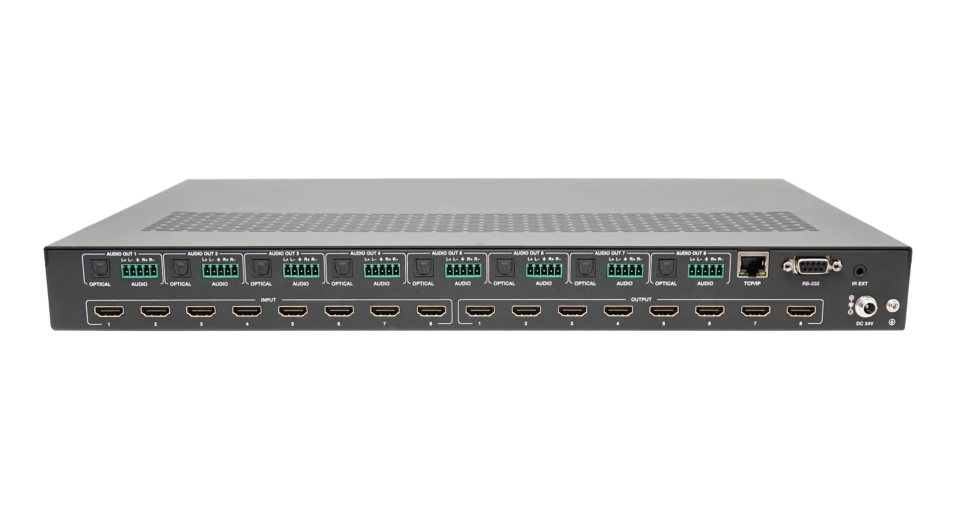 - Управление через кнопки, ИК-пульт, RS-232 и веб-интерфейс