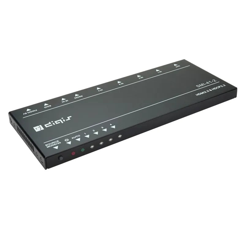 Матричный коммутатор Digis SMI-41-2 — это HDMI 2.0 коммутатор 4x1 с высокой скоростью передачи данных до 18 Гбит/с. Ультратонкий (12 мм). Поддерживает HDR, 3D, HDCP 2.2, HDMI 2.0. Управление через RS232 и ИК с пультом.