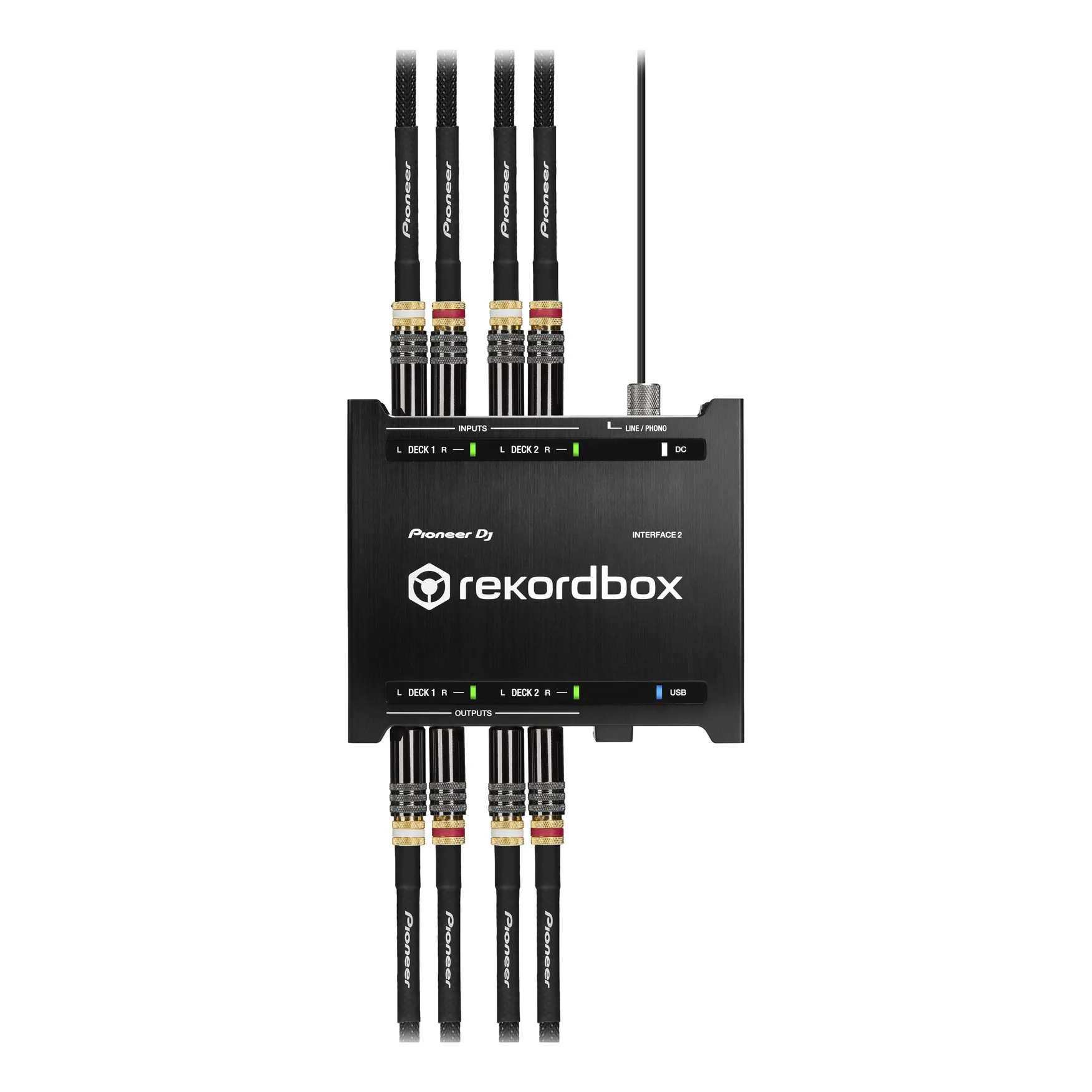 В комплекте с INTERFACE 2 вы найдете два лицензионных ключа для rekordbox dj и rekordbox dvs, а также два виниловых диска с тайм-кодом. В комплектацию INTERFACE 2 также входят четыре аудиокабеля, один USB провод и сетевой шнур, что позволяет использовать карту с программой rekordbox dvs сразу после покупки.