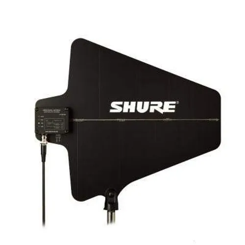 SHURE UA874WB — активная направленная UHF антенна с диапазоном частот 470–900 МГц. Имеет встроенный усилитель с четырьмя вариациями выбора усиления для компенсации потерь сигнала в кабеле. Можно монтировать отдельно, подвешивать на фермы или стены. Совместима с беспроводными приёмниками Shure.