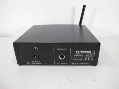 Приёмник SR40 Mini: кристально чистый звук, три светодиода состояния, регулятор громкости, кнопка включения/выключения. Имеет один балансный выход на разъёме 1/4" Jack.