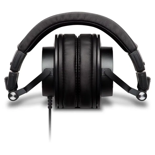 Динамические излучатели 45 мм с неодимовыми магнитами обеспечивают детальность и мощные басы. Импеданс 40 Ом и высокая мощность дают насыщенный звук. Поворотное крепление чашек, кабель длиной 3 м подключён к одной чашке.