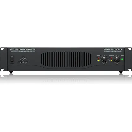 Behringer EP2000 — мощный усилитель с технологией ATR. Обеспечивает 2 х 1000 Вт в стереорежиме и 2000 Вт в мостовом. Есть светодиодные индикаторы мощности, сигнала и перегрузки. Входные разъёмы XLR и 1/4" TRS. Выходы — профессиональные SPEAKON. Защищён от перегрева и перегрузок. Разработан в Германии.