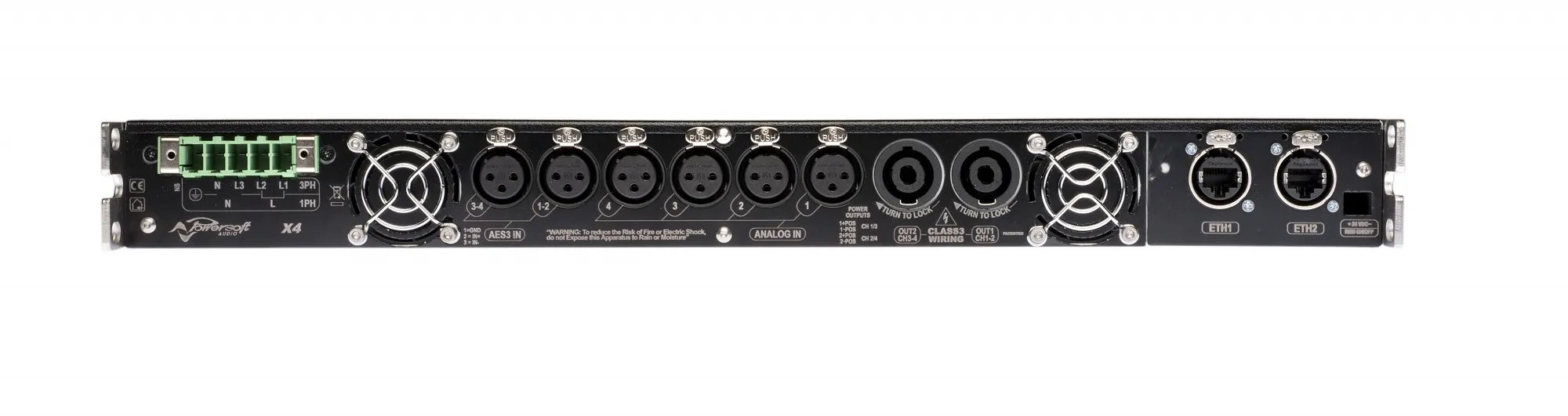 X4 DSP+ETH представляет собой многофункциональный четырехканальный усилитель от компании Powersoft. Схема управления аудиосигналами на основе ARM Cortex A-8 и TI C6000 DSP отвечает за высококачественную обработку аудиосигнала, обеспечивая небулевую маршрутизацию и микшинг, многоступенчатое выравнивание с фильтрами повышенного косинуса, а также IIR и FIR фильтрацию. Устройство оснащено разными кроссоверами: FIR, FIR-IIR, Баттерворт, Линквиц-Райли, Бессель: от 6 дБ/октав до 48 дБ/октав (IIR). Предусмотрена опция дистанционного управления и мониторинга благодаря использованию программного обеспечения Armonia. X4 DSP+ETH оборудован системами TruePower и Active DampingControl. Дистанционное управление осуществляется при помощи WI-FI модуля. Благодаря модульной системе возможно изменять конфигурацию задней панели. Блок питания позволяет усилителю напрямую подключаться к силовой линии любого стандарта, подходит для однофазной, двухфазной или трехфазной силовой линии от 85 В переменного тока до 440 В переменного тока без необходимости ручной настройки. Реализована функция трехфазной балансировки.Характеристики и возможности