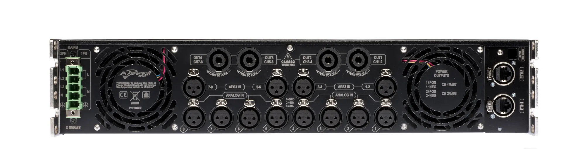 Powersoft X8 DSP+ETH, является еще одним представителем серии усилителей мощности POWERSOFT, как и все модели данной серии, усилитель создан на базе процессора ARM Cortex A-8 и платформы TI C6000 DSP. Этот низкочастотный восьмиканальный усилитель мощности обеспечит более живое, натуральное, чистое звучание без малейших искажений или потери информации. Данная модель оснащена цифро-аналоговым преобразователем Dual 24 бит 96 кГц Tandem. Включает она в себя так же и стандартный набор: встроенный DSP, эквалайзеры IIR, FIR, IIR+FIR, система ограничителей сигнала - RMS, TruePower лимитер, Active DampingControl и мониторинг нагрузки LiveImpedance. И все это позволяет качественно улучшить звуковые сигналы, сделать их ярче, мощнее, насыщенней.Характеристики: